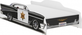 iGLOBAL Lit d'enfant Lit voiture Cars Lit junior Lit avec sommier à lattes Matelas mousse Sheriff 140 x 70 cm