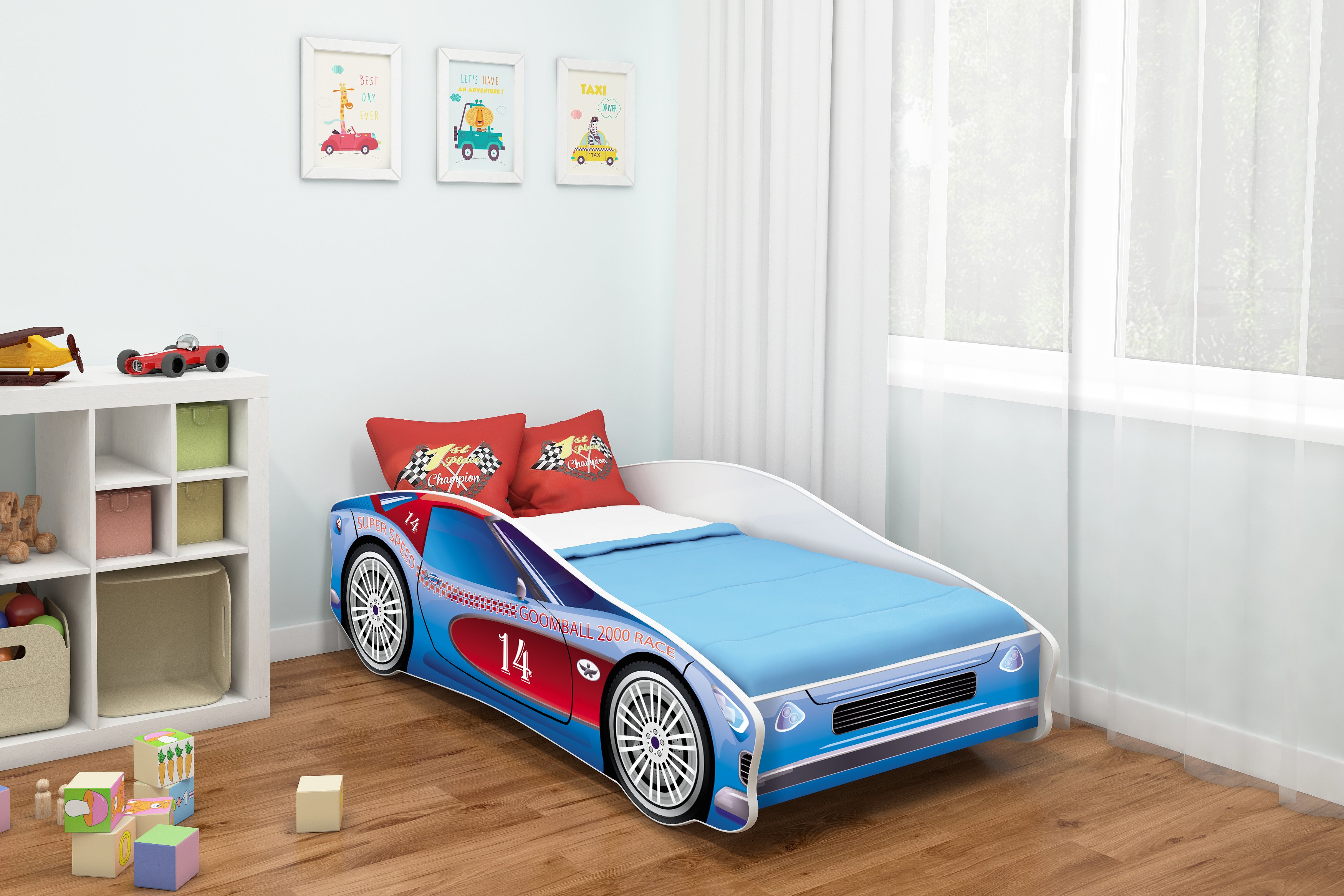 ACMA lit d'enfant lit de voiture lit junior Cars set complet avec matelas, sommier et protection contre les chutes 140x70 cm - CAR-6 + NOM