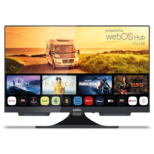 Cello Téléviseur Intelligent sans Cadre C2224WS 12 V 22 Pouces Traveller, Fast WebOS, Freeview Play, FreeSat, Haut-Parleur Pitch Perfect Bluetooth, Petit téléviseur pour Camping-Cars et camions