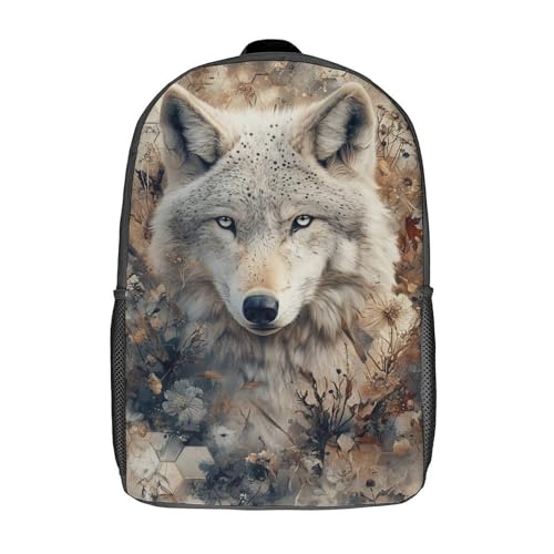 kaiyun Loup blanc Sac À Dos Unisexe Loisir Backpack Garçons École Sacs Filles Fleurs Cartable Daypacks Adulte Léger 17inch