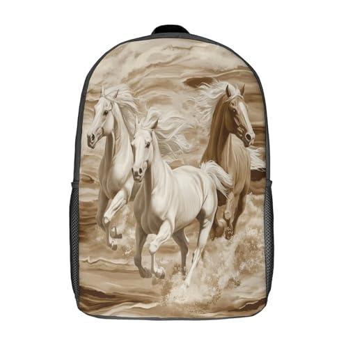 kaiyun Cheval blanc-Running in The Sea of Fleurs Femme Sac À Dos Garçons École Sacs Cartable Daypacks Adulte Fashion Décontracté Bag College Pack 17inch