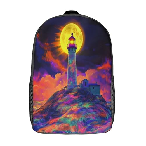 kaiyun Tie Dye Phare – Full Lune Sac À Dos Unisexe Loisir Backpack Garçons École Sacs Filles Cartable Daypacks Adulte Léger 17inch
