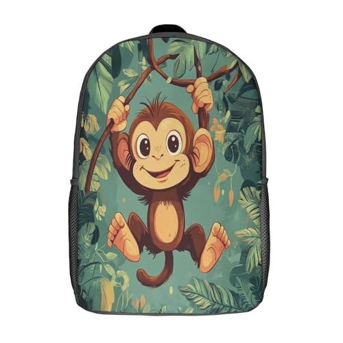 kaiyun Singe Sac À Dos Unisexe Loisir Backpack Garçons École Sacs Filles Swinging on Vignes Style dessin animé Cartable Daypacks Adulte Léger 17inch
