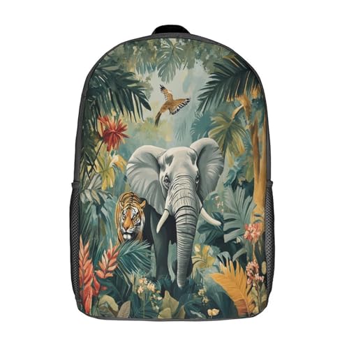 kaiyun Animaux de la Jungle Sac À Dos Unisexe Loisir Backpack Garçons École Sacs Filles Éléphant Tigre Cartable Daypacks Adulte Léger 17inch