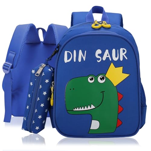 VASCHY Cartable Garçons Maternelle, Léger Mignon Sac à Dos Enfants 4-6 Ans Sac à Dos Garçons Imperméable pour A4 Dossier Préscolaire Voyage avec Sangle de Poitrine, Dinosaure Bleu