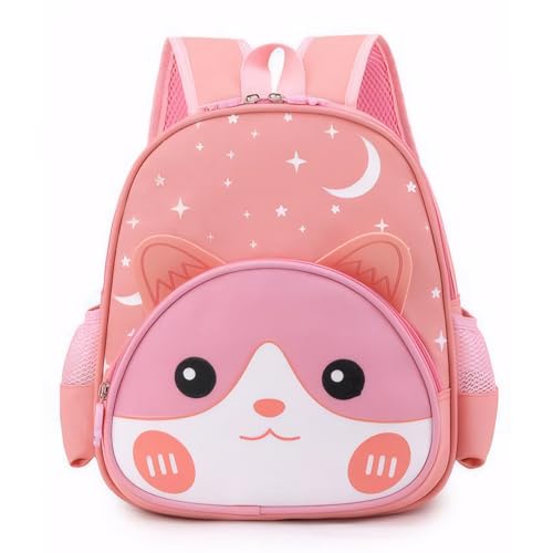Jinlaili Sac à Dos Garcon Fille Enfants, Imperméable Réglable Sac à Dos Cartable pour Enfants, Chats et Chiots, Dinosaure Cartable pour Ecole Maternelle, Crèche Garderie, 2-7 Ans (Rose)