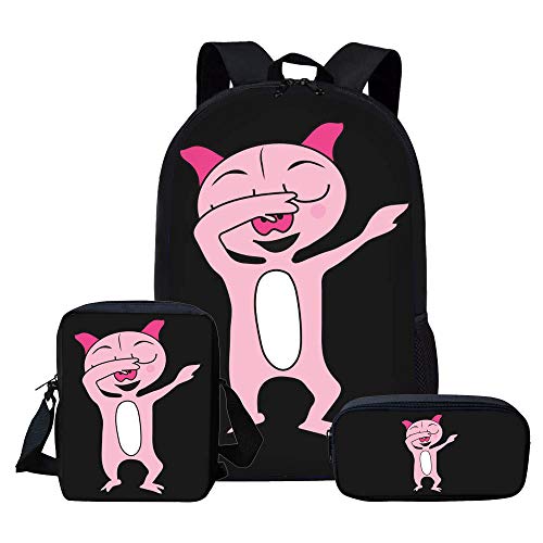 Showudesigns Ensemble cartable pour enfant Sac à dos/petit sac à bandoulière/trousse à crayons 3 en 1, Cochon drôle, Taille unique, Sac à dos enfant