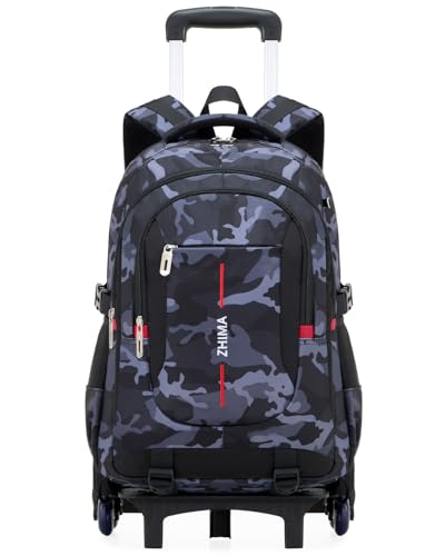 Amythe Cartable à Roulettes Garçon Camouflage 10-18 Ans – Trolley Scolaire 6 Roues avec Chariot Amovible – Sac à Dos à Roulettes pour Primaire Collège Lycée Rentrée – PC 15.6"