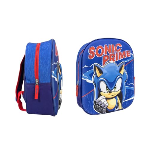 Sac à Dos Scolaire Sonic - Fermeture Éclair - 25x31x10 cm - Cartable pour Enfant avec Détails 3D - Bretelles Rembourrées