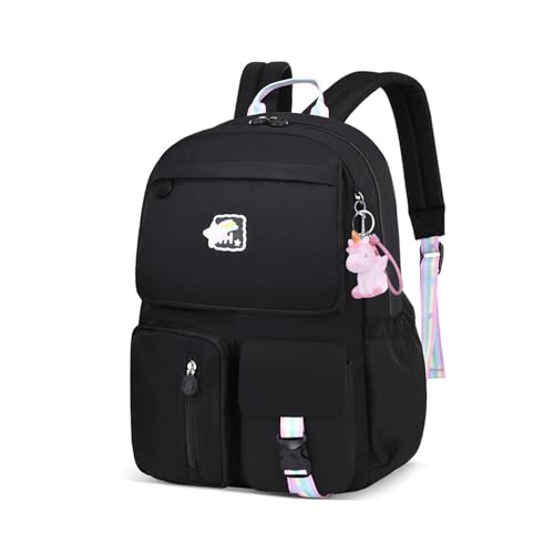 FANDARE Sac à Dos Femme Sac à bandoulière Filles Sac à Main Imperméable Sacs d'école Scolaires Cartables Dames Sacs d'épaule Loisir Sacs de Voyage Banlieusard Campus Multifonction Daypacks Noir