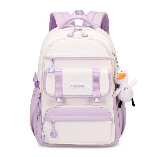 FANDARE Sacs à Dos Loisir Cartables Scolaires Femme Sac a Dos College Voyage Filles Sac Ecole Sac a Dos Voyage Cartables Scolaires Sac a Dos Ecole Color-Blocking Daypack avec Un Joli Pendentif Violet
