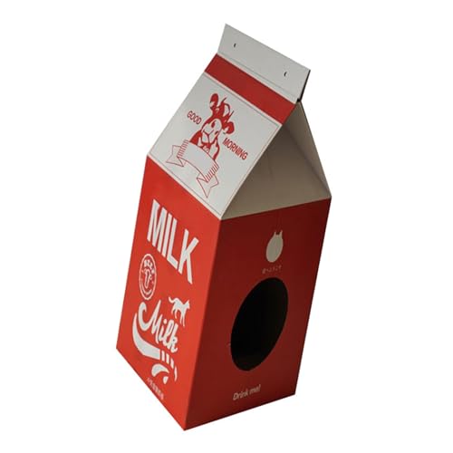 Naroote Maison de Chat en Carton, Conception de Cabane Mignonne, Boîte à Lait en Forme de Carte, Maison à Gratter pour Le Repos du Chat (Lait Fraise)