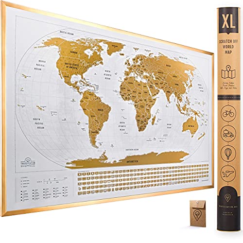 Travelization Carte du monde à gratter XL avec drapeaux - 36 x 24 Facile à encadrer Carte du monde à gratter Affiche d'art mural avec États américains et drapeaux - Carte du monde originale à gratter