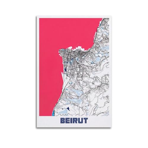 Poster carte vintage du Moyen-Orient Liban Beyrouth 40 x 60 cm