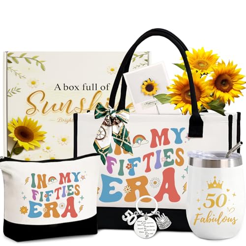 Yogopro Anniversaire des 50 ans Femme, Set de 7 Pièces Sac en Toile Sac Shopping & Sac à Maquillage avec Carte de Vœux – Cadeaux pour Anniversaire des 50 ans Maman Épouse Meilleure Amie Sœur Collègue