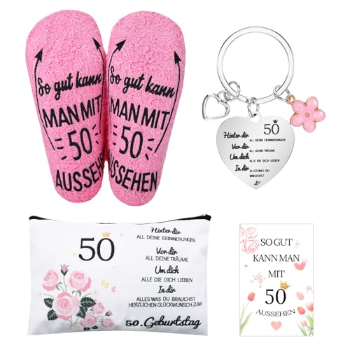 50e anniversaire femme, carte d'anniversaire 50 ans, cadeau pour 50e anniversaire, femme, chaussettes, trousse de maquillage et porte-clés pour Noël et Thanksgiving