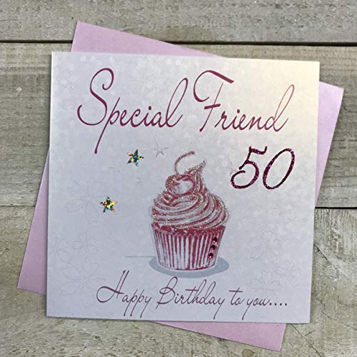 WHITE COTTON CARDS WB202-50 Carte d'anniversaire Faite à la Main pour 50 Ans Motif Cupcakes Rose