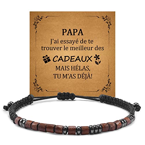 YELUWA I Love You Bracelet Réglable en Perles de Bois Pour Homme, Cadeau pour Papa Avec Boîte et Carte, Cadeau de Fête des Pères et D'anniversaire Noël Pour Papa de La Part Du Fils Et de la Fille