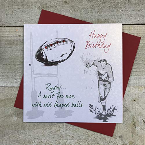 WHITE COTTON CARDS "Happy Birthday Rugb... d'un Sport pour Homme avec Traduction en Forme de balles Faite à la Main Joke Carte d'anniversaire