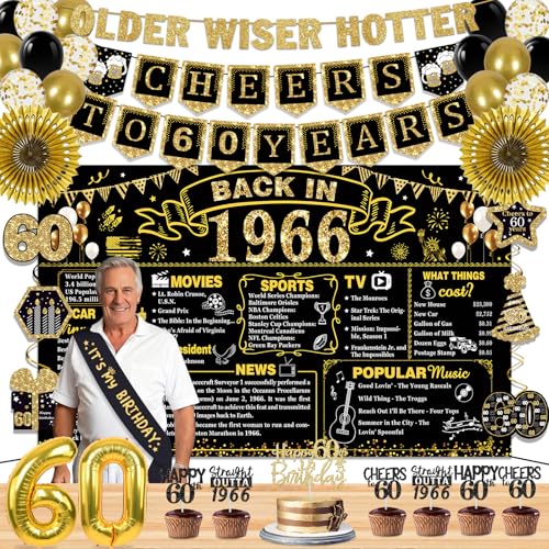 Décorations de 60e anniversaire pour homme et femme, 16 bannières « Back in 1964 », y compris une bannière vintage 1964, une carte d'anniversaire de 1964, une bannière « Cheers to 60 years », 7