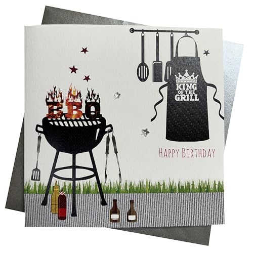 White Cotton Cards SB7 Carte d'anniversaire Faite Main pour Homme Inscription BBQ King Happy Birthday