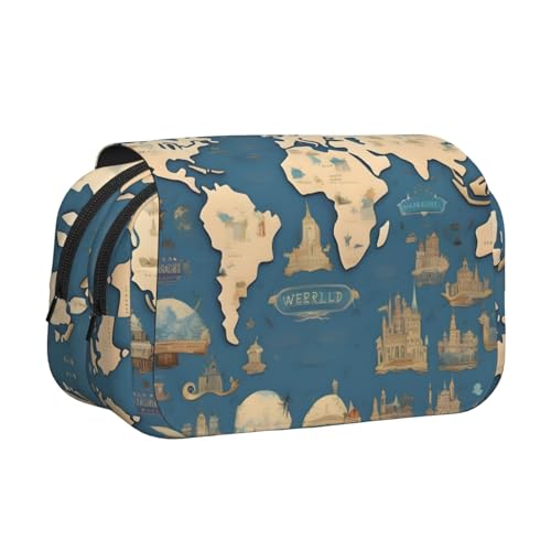 YQxwJL Grande trousse à crayons avec fermeture éclair - Grande capacité - Motif carte du monde - Pour le bureau et la maison, Noir/blanc, One Size, Morden