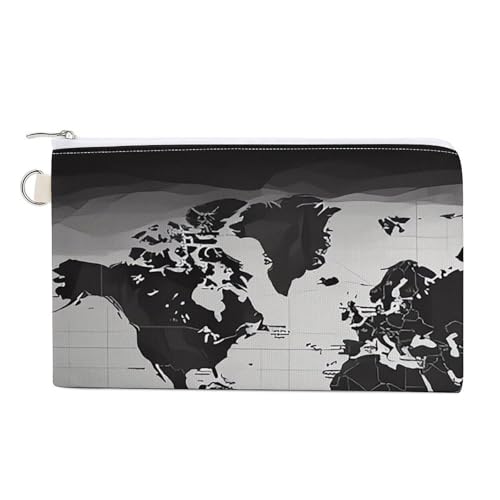 Anceky Portefeuille Carte du Monde Noir et Blanc pour Hommes et Femmes, Porte-Monnaie en Toile, Porte-Monnaie zippé avec Fermeture sécurisée