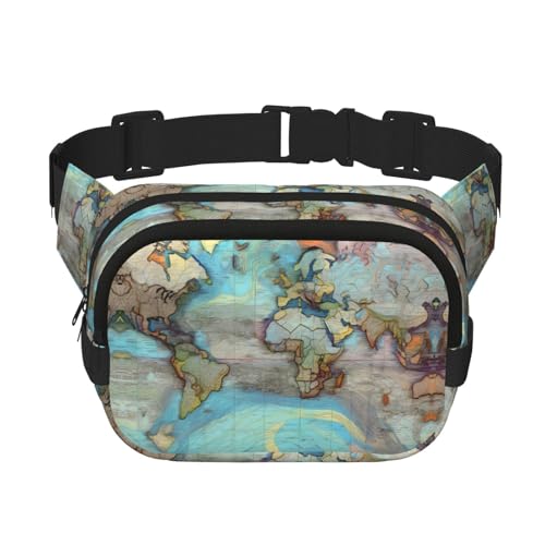 Sac à bandoulière de voyage avec carte du monde de dessin animé, sac de taille tendance et décontracté, sac banane carré double couche, noir, taille unique, Noir/blanc, One Size
