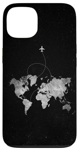 Housse de téléphone de voyage noire et blanche | Carte du monde avec avion Coque pour iPhone 13