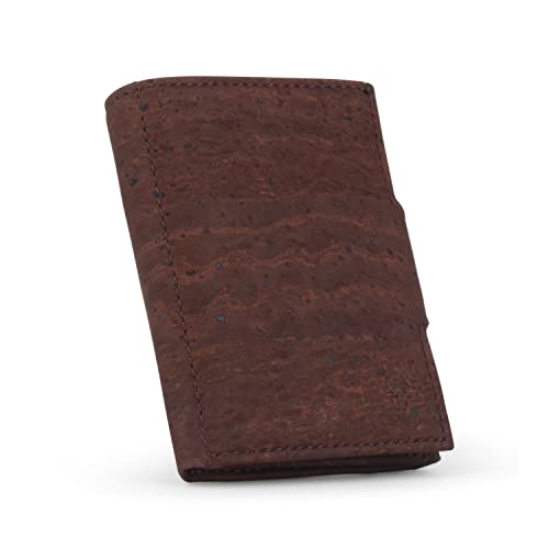 DONBOLSO Porte Carte en Cuir de Liège NextGen | Portefeuille Végétalien avec Protection RFID | Mince sans Pochette à Monnaie | Etui Jusqu'à 11 Cartes | Liège Marron