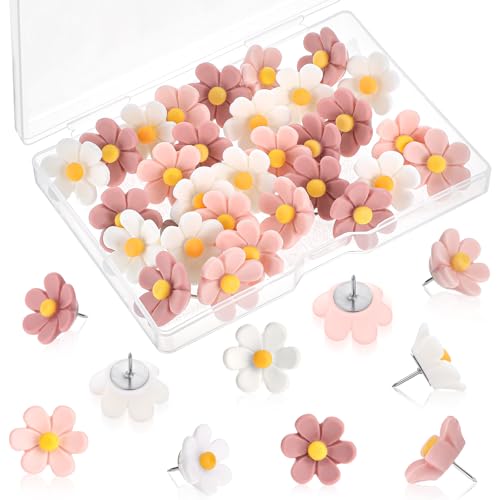 Lot de 30 punaises décoratives créatives en forme de fleurs pour tableau d'affichage - Pour le bricolage, la carte, le tableau en liège, l'affichage de photos, bureau, maison