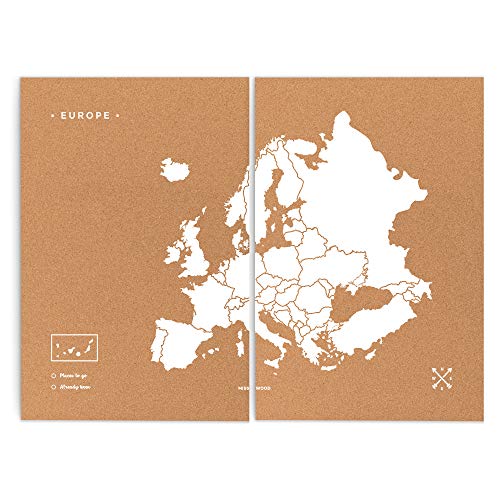 Miss Wood Woody Map XXL – Carte du Monde en liège avec Motif Europe, Couleur Marron