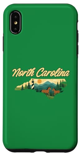 Carte de l'état de la Caroline du Nord avec Paysage Naturel extérieur NC Coque pour iPhone XS Max