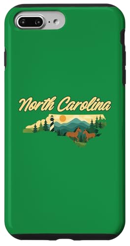 Carte de l'état de la Caroline du Nord avec Paysage Naturel extérieur NC Coque pour iPhone 7 Plus/8 Plus