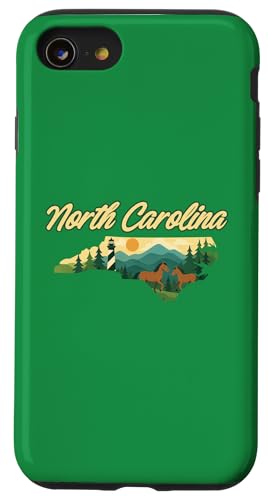 Carte de l'état de la Caroline du Nord avec Paysage Naturel extérieur NC Coque pour iPhone SE (2020) / 7/8