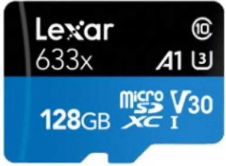 Lexar, carte mémoire microSDXC 128GB 4K 100MB/s avec adaptateur SD, Noir / Bleu