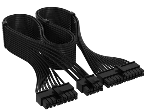 CORSAIR Câble à 24 Broches ATX à Gaine Individuelle Carte Mère Type 5 Elite Premium – 610 mm, Peignes à Câble Profil Bas, Conception Paracord à Maille Triple Couche – Noir