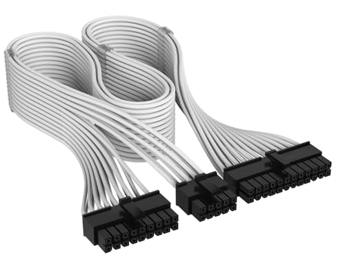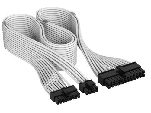 CORSAIR Câble à 24 Broches ATX à Gaine Individuelle Carte Mère Type 5 Elite Premium – 610 mm, Peignes à Câble Profil Bas, Conception Paracord à Maille Triple Couche – Blanc