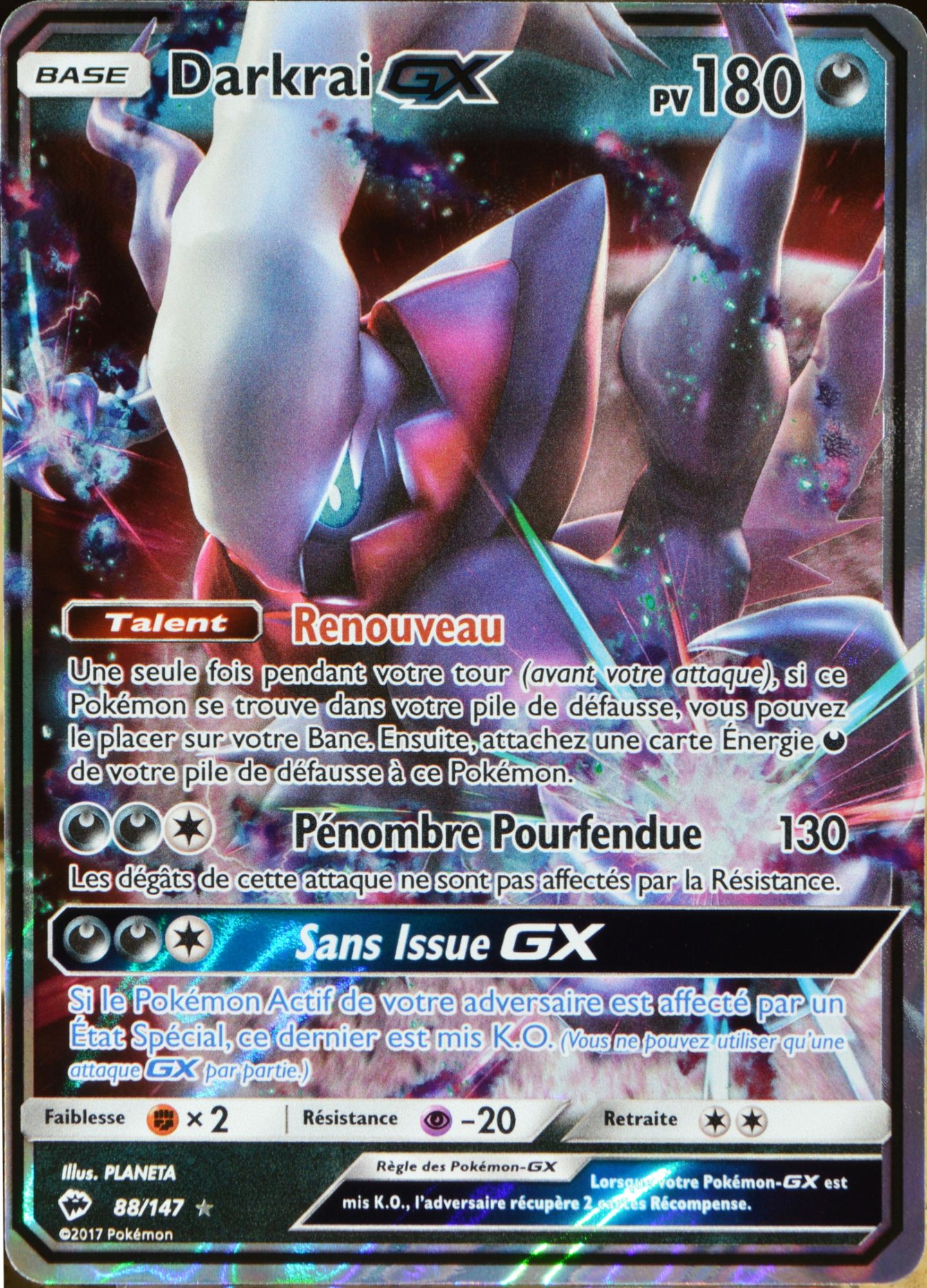 Carte Pokémon 88/147 Darkrai Gx 180 Pv - Reverse