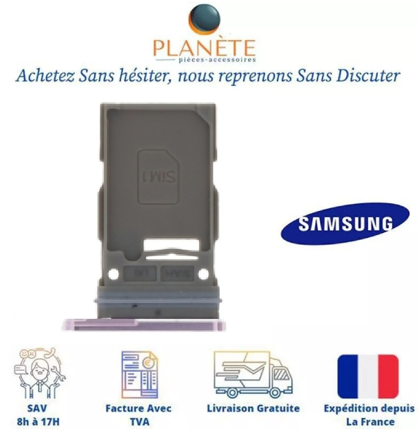 Tiroir carte Dual nano SIM pour Galaxy S23 et S23 Plus Pièce Original Samsung Lavande