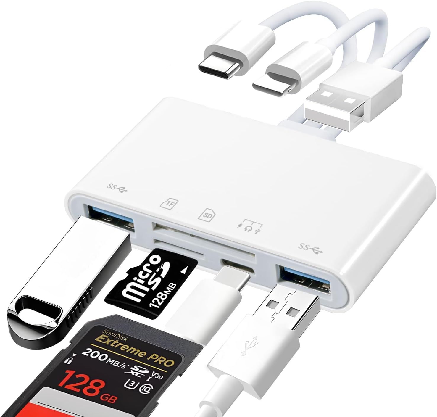 Lecteur de carte SD pour téléphone portable,appareil externe,Plug and Play,cartes Micro TF,ordinateur portable,PC,IOS,iPhone,iPad,2 en 1