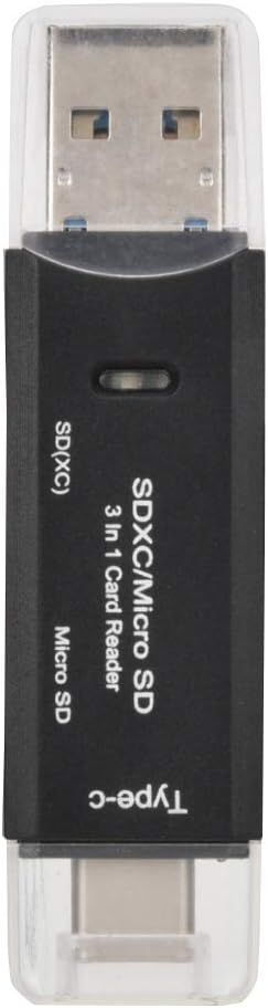 Lecteur de Carte, 3 en 1 Lecteur de Carte de Transmission Haute Vitesse de Type C avec indicateur LED Prend en la Carte TF&SD pour téléphone Mobile, Ordinateur et Carte (Noir)