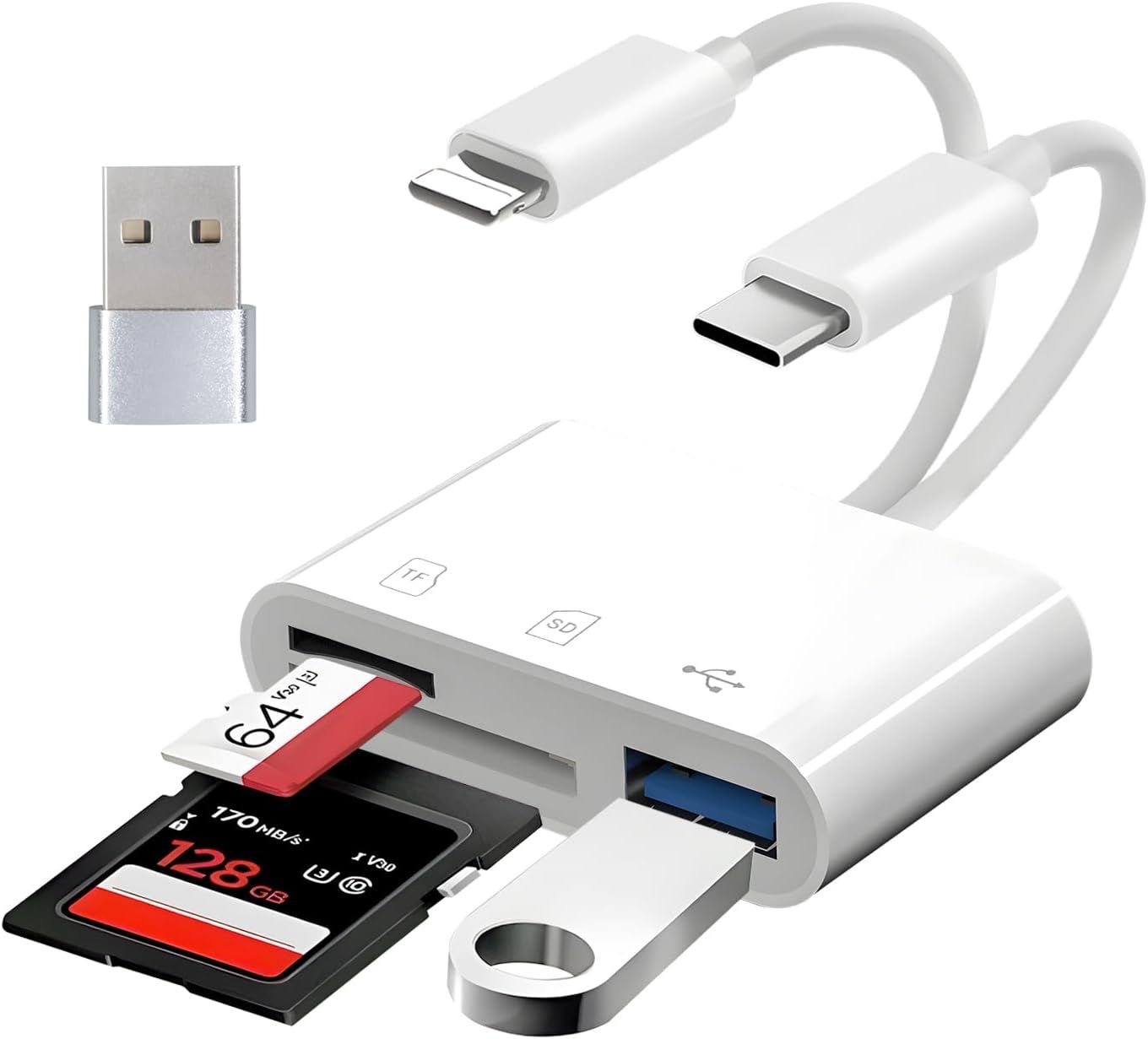 Lecteur de Carte SD pour Téléphone,Adaptateur USB OTG Compatible avec Carte SD/TF,Adaptateur D'éclairage vers USB OTG,Compatible avec Tablette de Téléphone,Lecteur de Cartes,Clé USB,Clavier,Souris