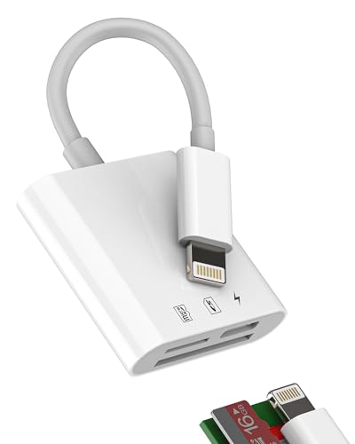 Lecteur Carte SD pour iPhone [Certifié Apple MFi] 3 en 2 Adaptateur Carte SD USB C Lightning vers SD/Micro SD/USB, Adaptateur de Carte Mémoire, SD Card Reader pour iPhone 16/15/14 iPad Android