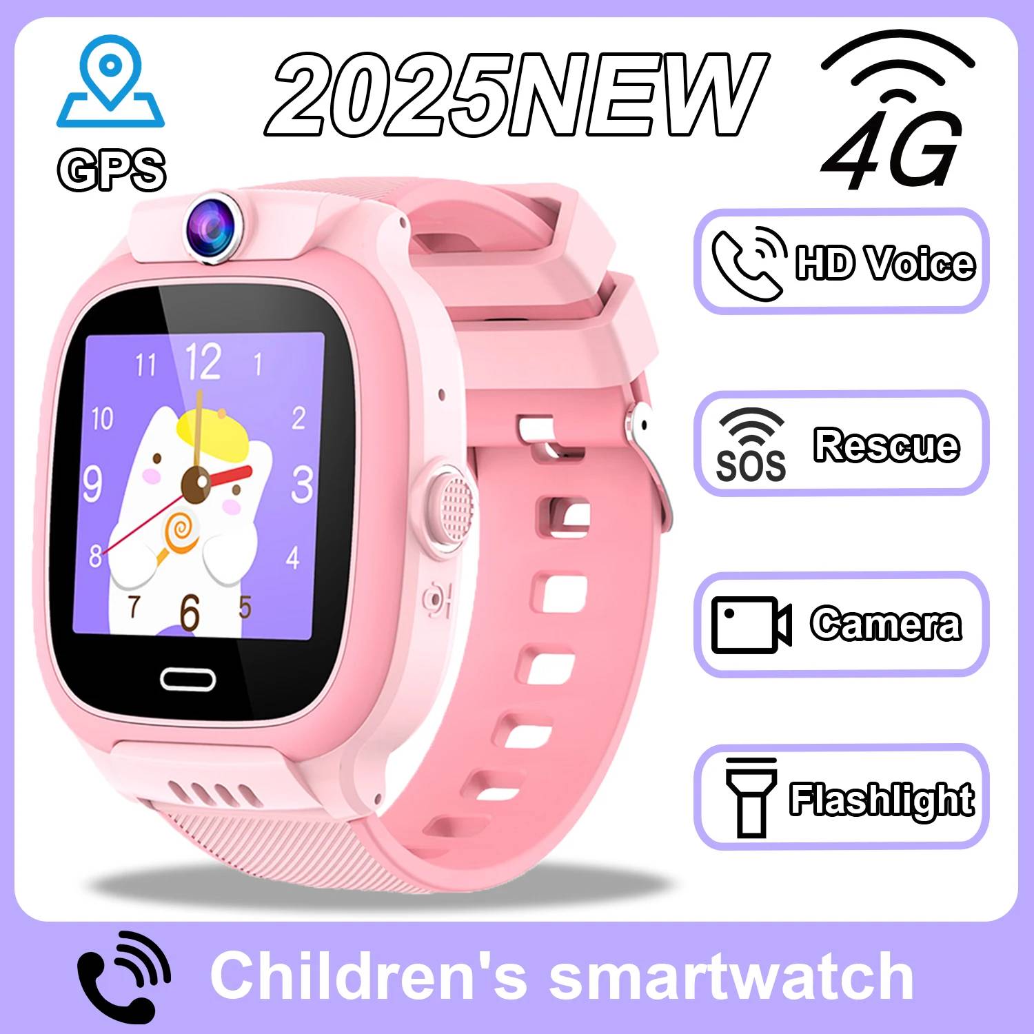 Enfants 4G Montre Intelligente Sos Gps Localisation Appel Vidéo Carte Sim Pour Xiaomi Enfant Montre Intelligente Caméra Étanche Mise À Niveau Montre Garçons Filles.Pink.2025New Sim Gps