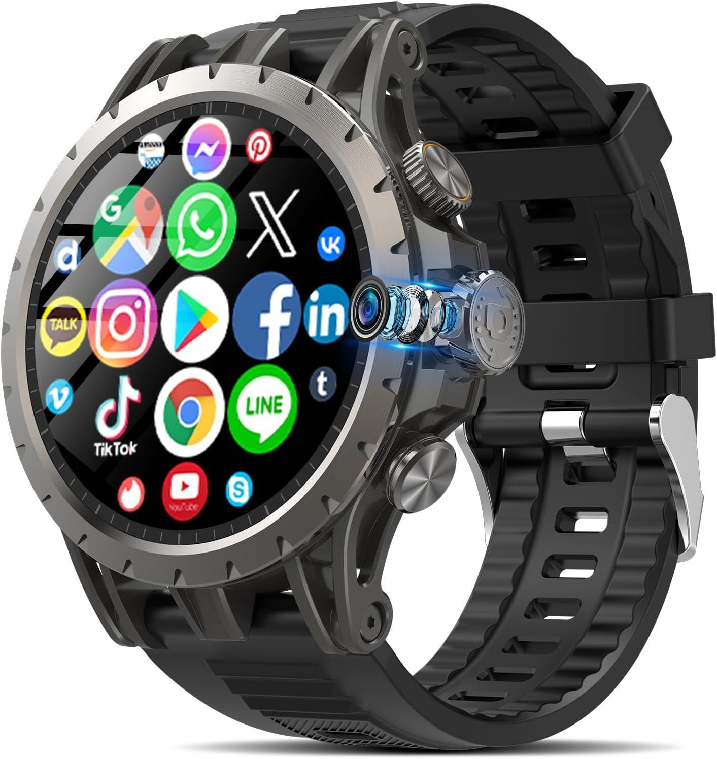 LOKMAT Montre intelligente Android 4G, écran AMOLED 1,75" 3 Go + 32 Go, tracker d'activité de sport, montre intelligente pour hommes et femmes, avec fente pour carte SIM, caméra rotative, GPS, NFC