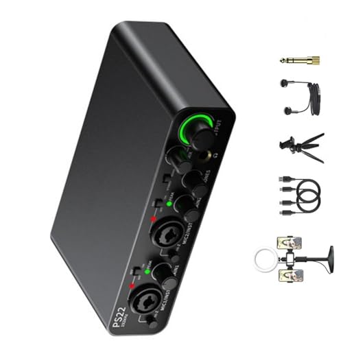 Fesjoy Interface Haute Résolution pour PC - Carte Son XLR Professionnelle avec Alimentation Fantôme 48 V - Idéale pour L'enregistrement de Musique Compatible avec Les Téléphones Mobiles [interfaces