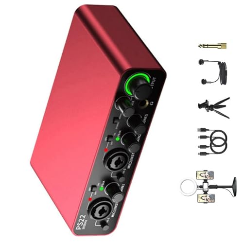 Asixxsix Interface Audio USB C, 24 Bits 192 KHz Double Entrée TS XLR Préampli Microphone Carte Son Portable Interface Audio USB pour Enregistrement, Streaming en Direct, Podcasting Home (rouge)