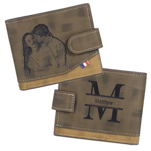 Presentimental Portefeuille en Cuir Personnalisé Homme avec Nom Initiales Photo Porte-Cartes RFID Cadeau Personnalisé pour Fête des Pères Noël Anniversaire Saint-Valentin (Style 1)
