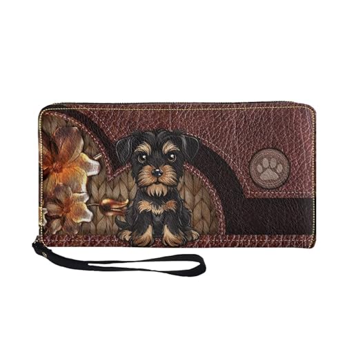 COEQINE Portefeuille fin en cuir PU pour homme avec fermeture éclair, porte-cartes et accessoires de voyage pour papa, anniversaire, jour commémoratif, Chien Charyorker mignon, Décontracté